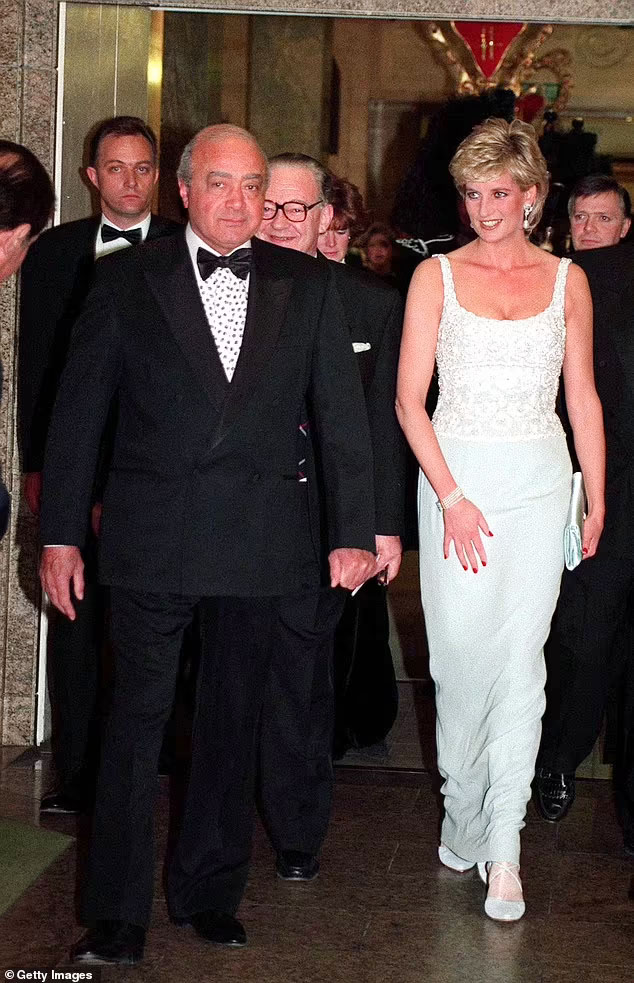 Al Fayed, 92, famously owned Harrods from 1985 to 2010, and was the store’s most famous owner (pictured with Princess Diana in February 1996) and his son Dodi was said to be dating the royal