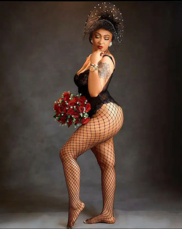 Some social media fans have dragged Churchill’s wife, Rosy Meurer over her lingerie birthday photoshoot shared on her page during her birthday period.