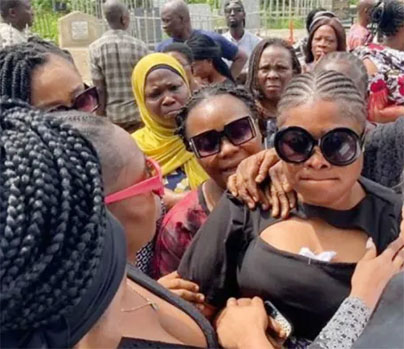 At the funeral, Mrs Adeniran is seen dressed in black weeping profusely and asking to see her daughter’s corpse in the white coffin.