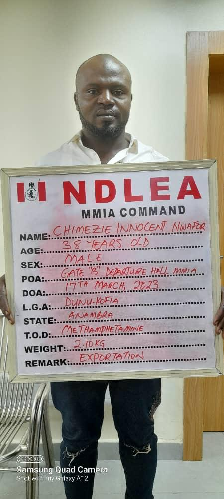 In the same vein, NDLEA operatives at the Lagos airport have thwarted attempt by a suspect, Chimezie Innocent Nwafor to export 2.10 kilograms of methamphetamine to Brazil.