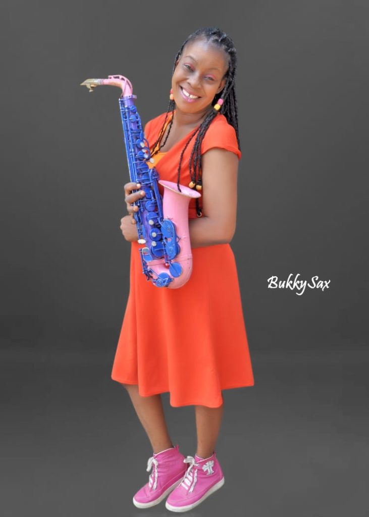 Bukola Olorunsola popularly known as Bukkysax is a multi-talented instrumentalist, and musicologist that has mastered the art of playing Piano, Trumpet, Clarinet, Violin, Drums, and Guitar to cap it all, her manipulation of the Saxophone has made her a celebrity in the male-dominated art.