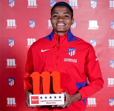 Rasheedat Ajibade, a forward with the Super Falcons, has been named the March Player of the Month for Spanish side, Atletico Madrid Feminine. In four league appearances for Atletico Madrid during the month, Ajibade scored three goals.