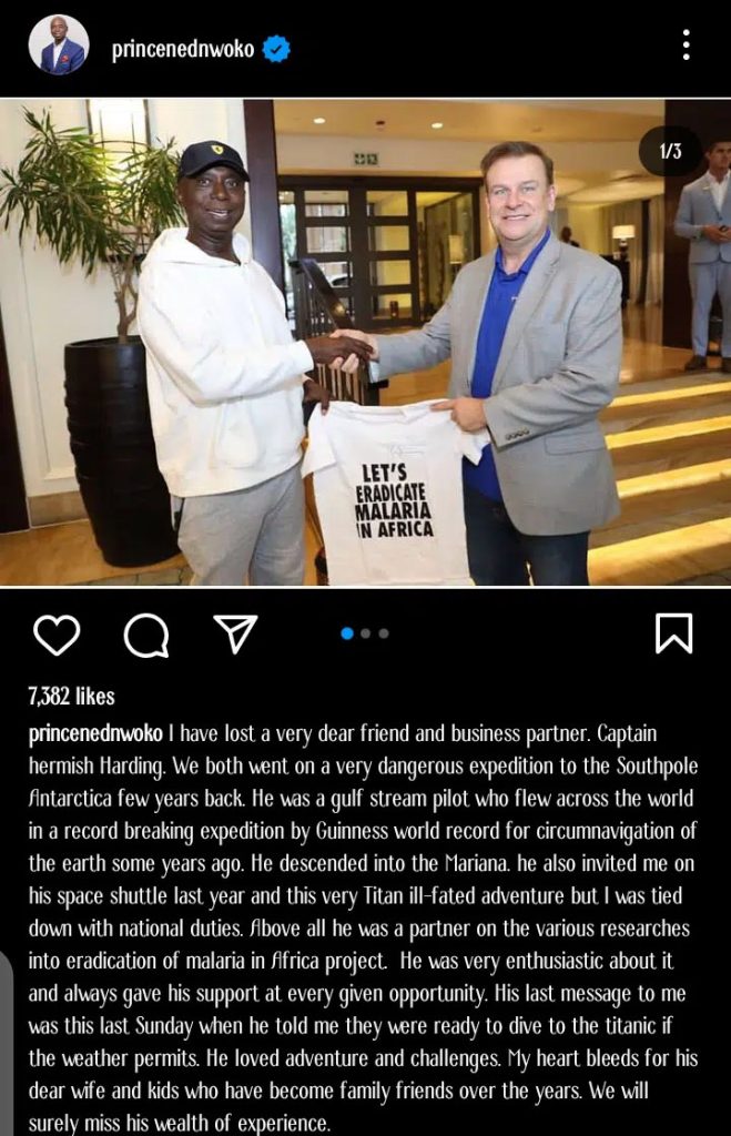 During a period of mourning for the untimely death of his friend, Hamish Harding, a British business magnate who tragically lost his life while undertaking a voyage to explore the remains of the Titanic, Ned Nwoko shared this revelation.